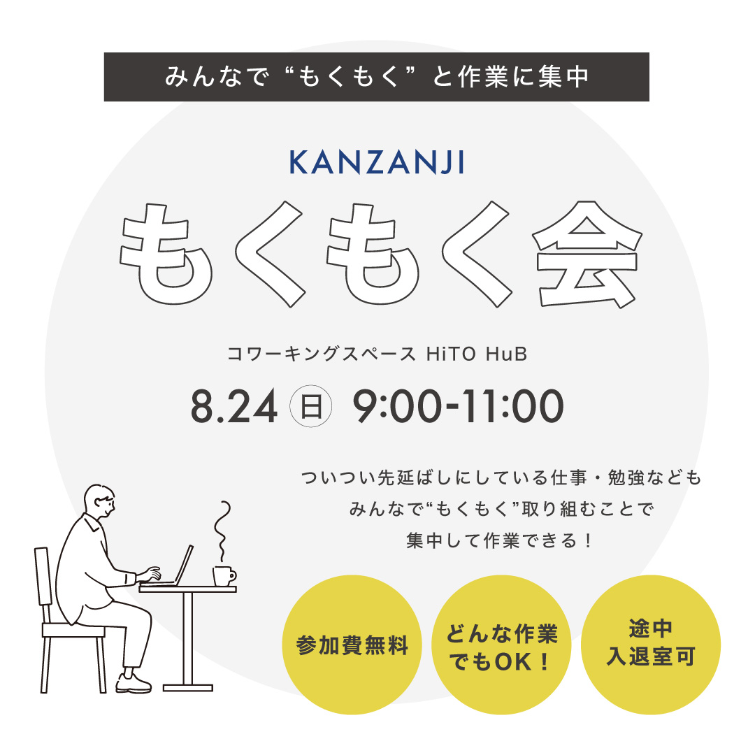 浜松市舘山寺のコワーキングスペースHiTO HuBで「もくもく会」を開催します!